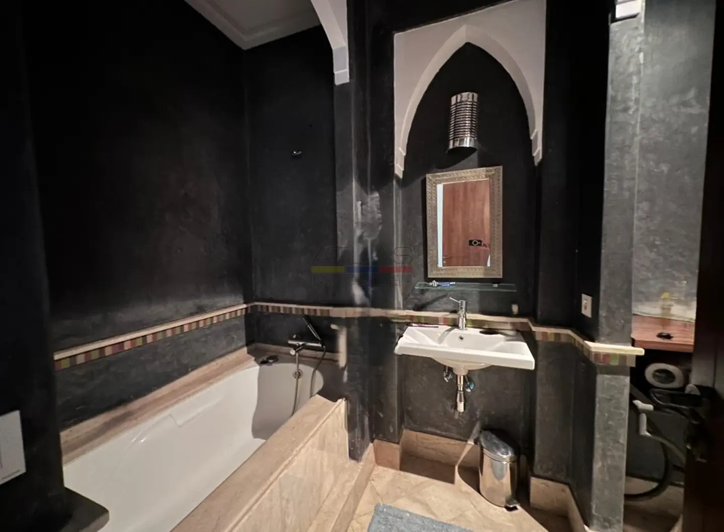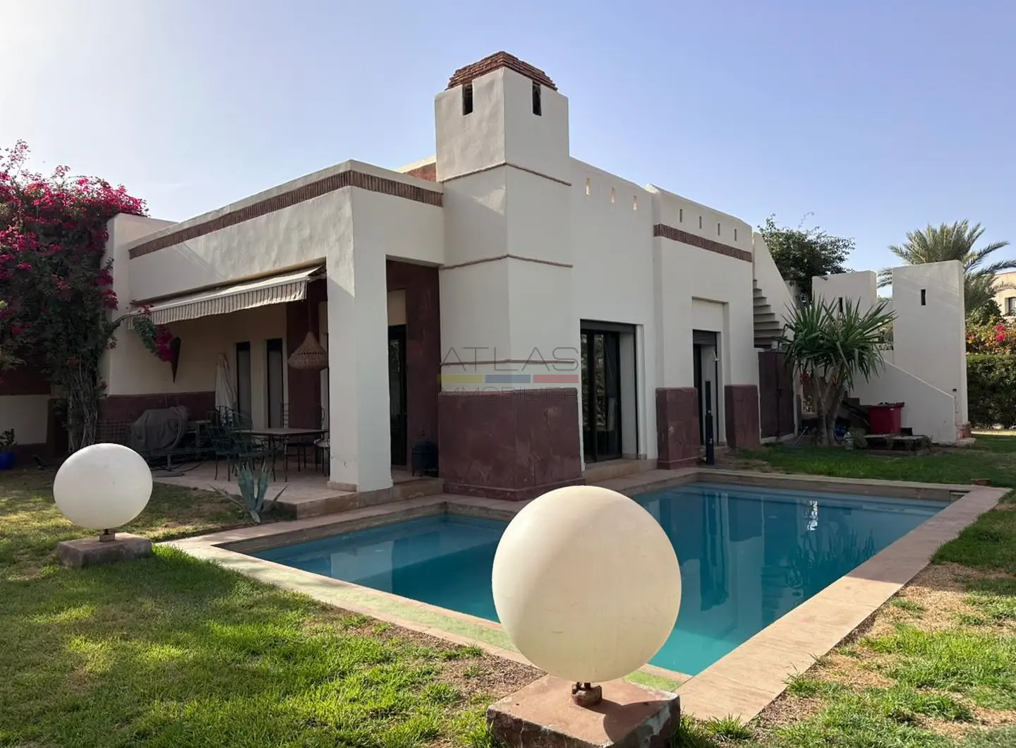 La propriété dispose de trois chambres, chacune dotée de sa salle de bain privative, garantissant confort et intimité à ses occupants. Vendue vide, elle permet de personnaliser entièrement les aménagements selon vos envies. Depuis le roof-top accessible et aménagé, vous profiterez d’une vue dégagée et spectaculaire sur la chaîne de l’Atlas, un véritable atout pour apprécier les couchers de soleil.