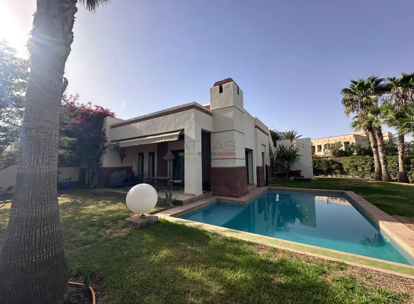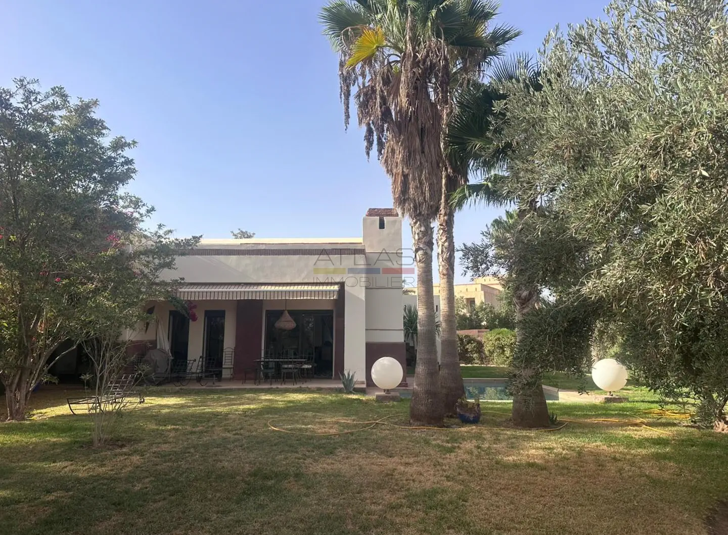 Située au kilomètre 18 de la route de Fès, cette charmante villa de plain-pied offre un cadre de vie paisible au sein d’une résidence privée et sécurisée, à seulement vingt minutes du centre de Marrakech. Entourée d’un vaste jardin arboré de 1000 m², elle séduit par son atmosphère calme, sa luminosité et son fort potentiel d’aménagement.