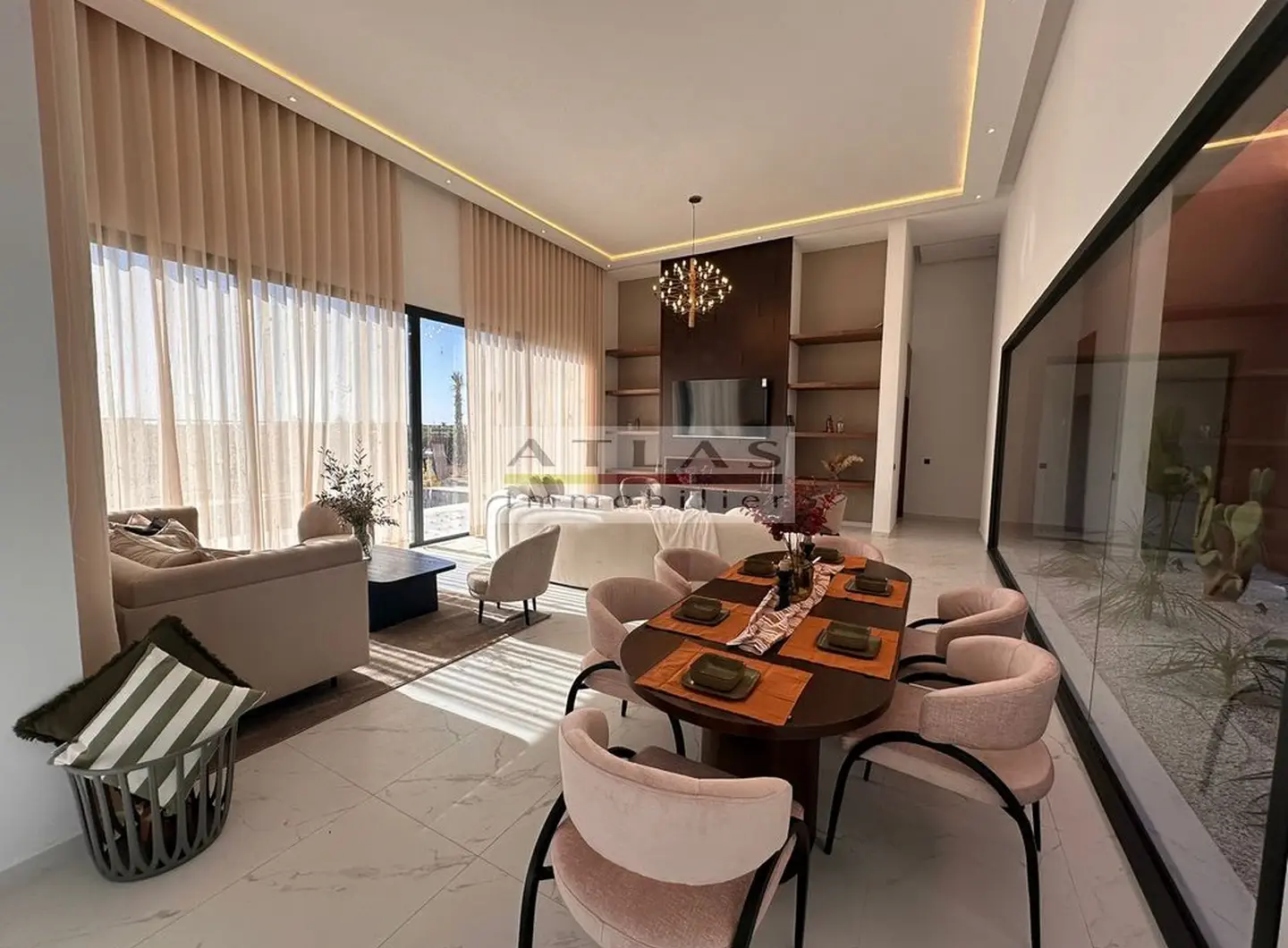 Ce programme neuf se compose de 44 villas contemporaines de plain-pied, construites sur des terrains spacieux de plus de 1 000 m², orientées vers les majestueuses montagnes de l’Atlas. Elles sont proposées en deux modèles, de 261 m² et 354 m², et séduisent par leur conception moderne respectant les normes européennes, leurs vastes baies vitrées qui inondent les espaces de lumière naturelle et leurs finitions haut de gamme. Chaque villa dispose d’un jardin privatif, d’une piscine de 11 mètres et de quatre suites élégantes, chacune avec sa propre salle de bain.