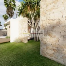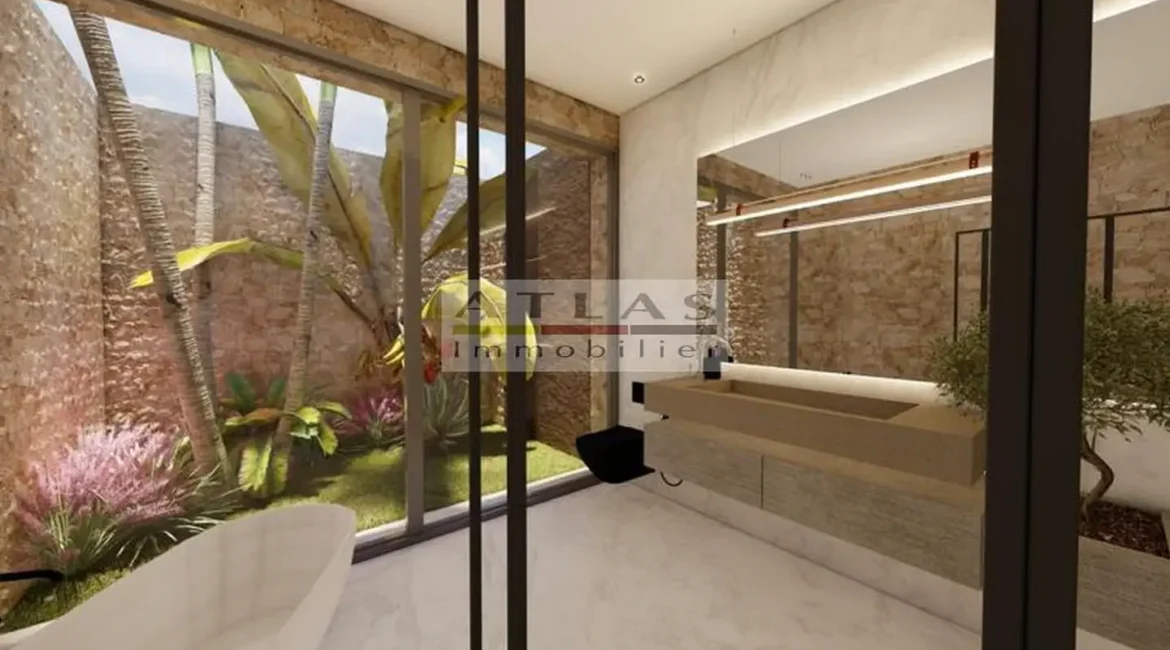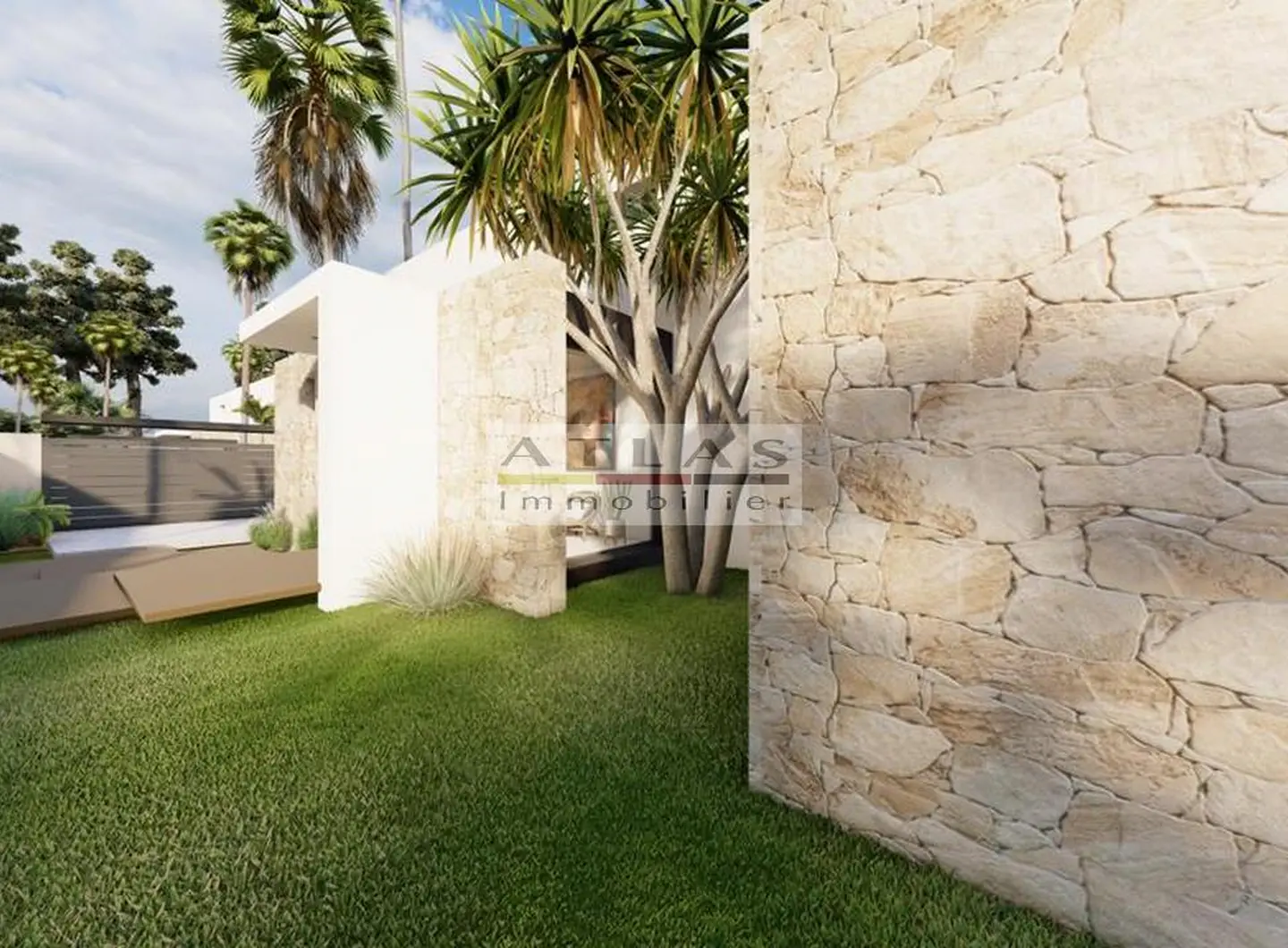 À l’extérieur, de magnifiques terrasses couvertes ou découvertes s’ouvrent sur un splendide jardin paysager, agrémenté d’une piscine à débordement de 14 × 6 m avec plages immergées et d’un coin désertique aux essences variées. Chaque villa est équipée d’aménagements haut de gamme : portes toute hauteur avec charnières invisibles, isolation phonique et thermique conforme aux normes européennes, climatisation gainable réversible, VMC double flux, système d’alarme et vidéosurveillance.