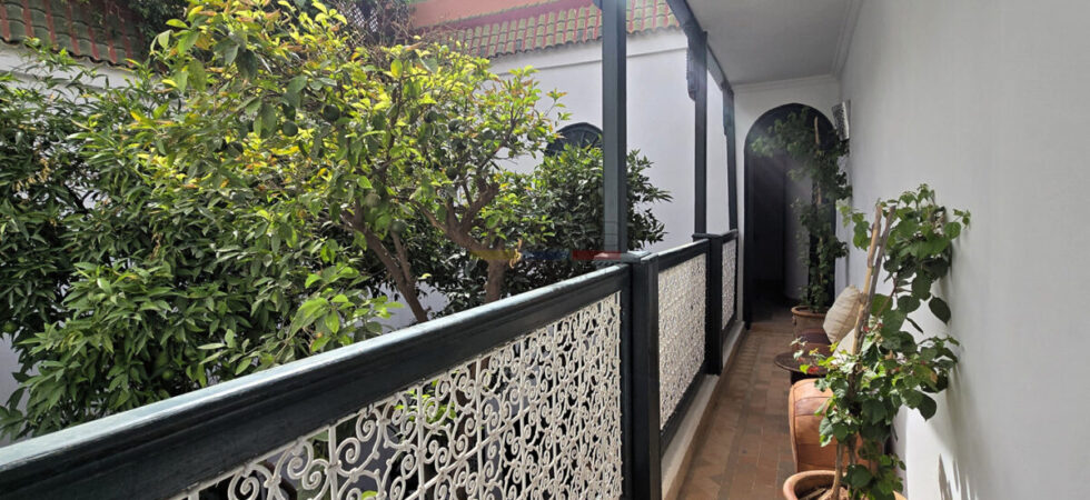 La terrasse, accessible par l’escalier intérieur, propose un agréable coin abrité idéal pour les repas en plein air, ainsi qu’un espace « solarium » invitant à la détente. L’ensemble forme un lieu de vie paisible, baigné de lumière, parfait pour une résidence principale, secondaire ou un investissement locatif dans l’un des secteurs les plus recherchés de Marrakech.